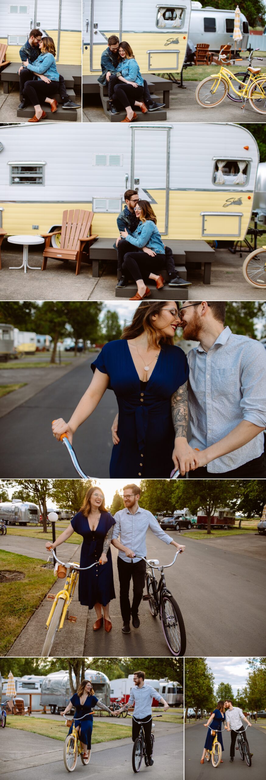 Gosh- what can I even say about these two magical people!? Amanda and Lane and I all met up at The Vintages, a very hip vintage RV resort in wine country for a fun afternoon spent biking, making 1927 S’mores and dancing in meadows. After meeting Amanda at a backyard party after both photographing weddings, we instantly bonded and started working together. Amanda and Lane met and fell in love on a weekend holiday at The Vintages early in their relationship, so it made the engagement session extra special. (awe!) Many of you may recognize her as our talented studio manager & photographer at our awesome sister studio; A Lovely Day Photography! Their fun love and witty jokes had the Glitch Video team and I laughing all the way. (Click here to see their cool engagement video!) Their wedding this month at Union Pine going to be incredible and I can’t wait to document their wedding story!!!