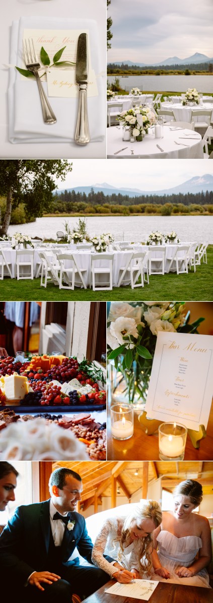 Grace and Jack’s perfect summer’s wedding at Black Butte had a few of my very favorite things; horses, canoes, and s’mores! Black Butte Ranch is one of my very favorite resorts located near Sisters, Oregon with stunning views of the Three Sisters Mountains and Mt. Washington (the one with the pointy top) The staff, food, views and grounds are top notch and I loved the connection the couple have with the location as they have celebrated several holidays there. Grace and Jack met in dental school and knew there was something really special between them. I originally met Jack because I photographed his Dad’s second wedding wayyy back in 2013! (side note: I’m celebrating 11 years of full-time weddings this year!) I absolutely loved Grace’s dress which was her mom’s wedding dress redesigned just for Grace. The flowers were simple and elegant from Jordan at Blum Design and the party was non-stop! With a sweet first look with her Dad, an emotional ceremony complete with tears and Grace’s veil lightly blowing in the summer breeze, and an elegant open-air dinner on the lawn, this was truly a perfect day on the ranch!