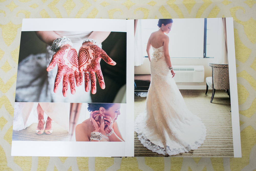 Mailee and Robin’s wedding album suite is a timeless collection of gorgeous images in three albums, the 11*14” Heirloom album with a metal cover for Mailee and Robin and two 8*8” parent albums for each of their their respective sets of parents. This is a beautiful way to preserve all the memories and thoughts from your wedding day to be passed down from generation to generation. These archival books are handmade in New York and use the most impressive leathers and papers to achieve a gorgeous piece of art.