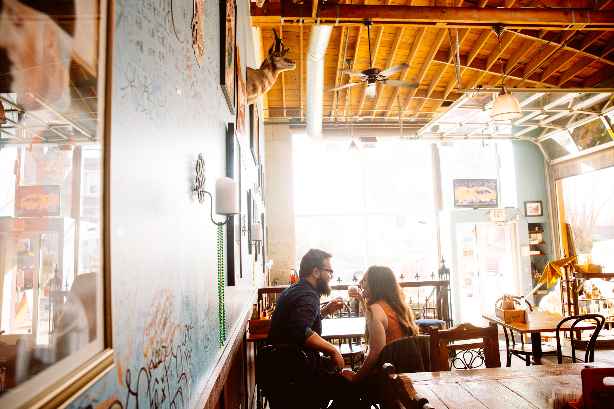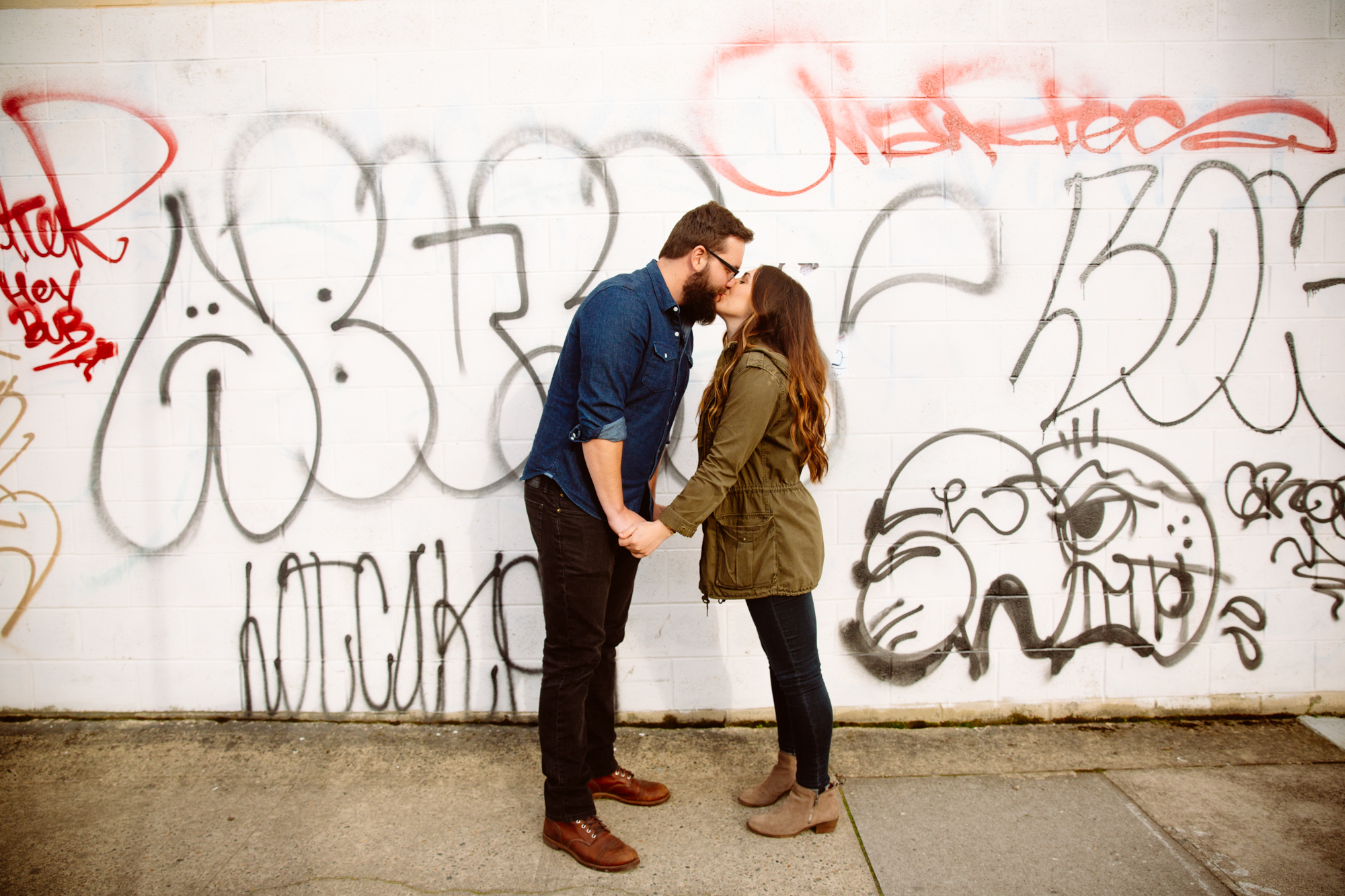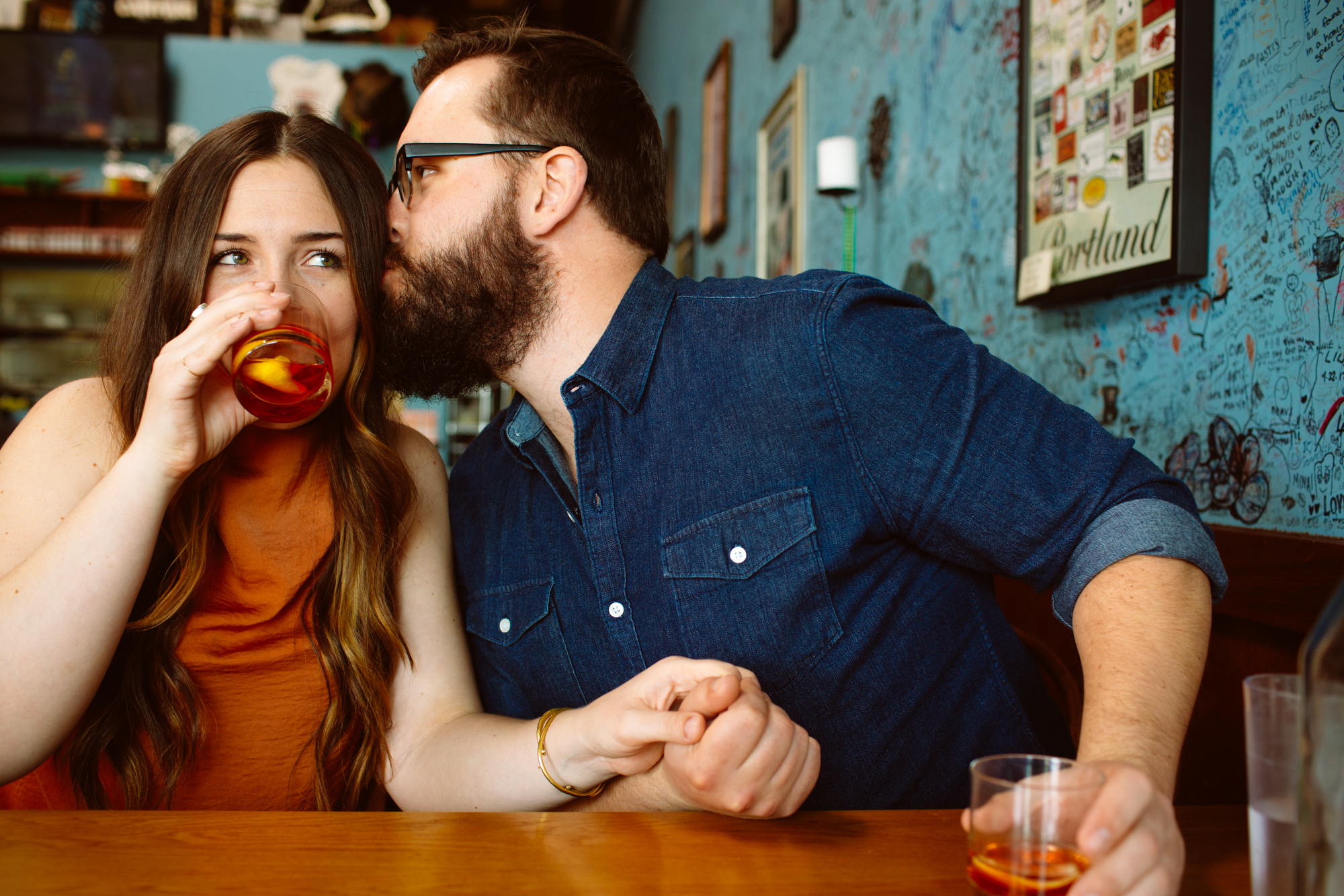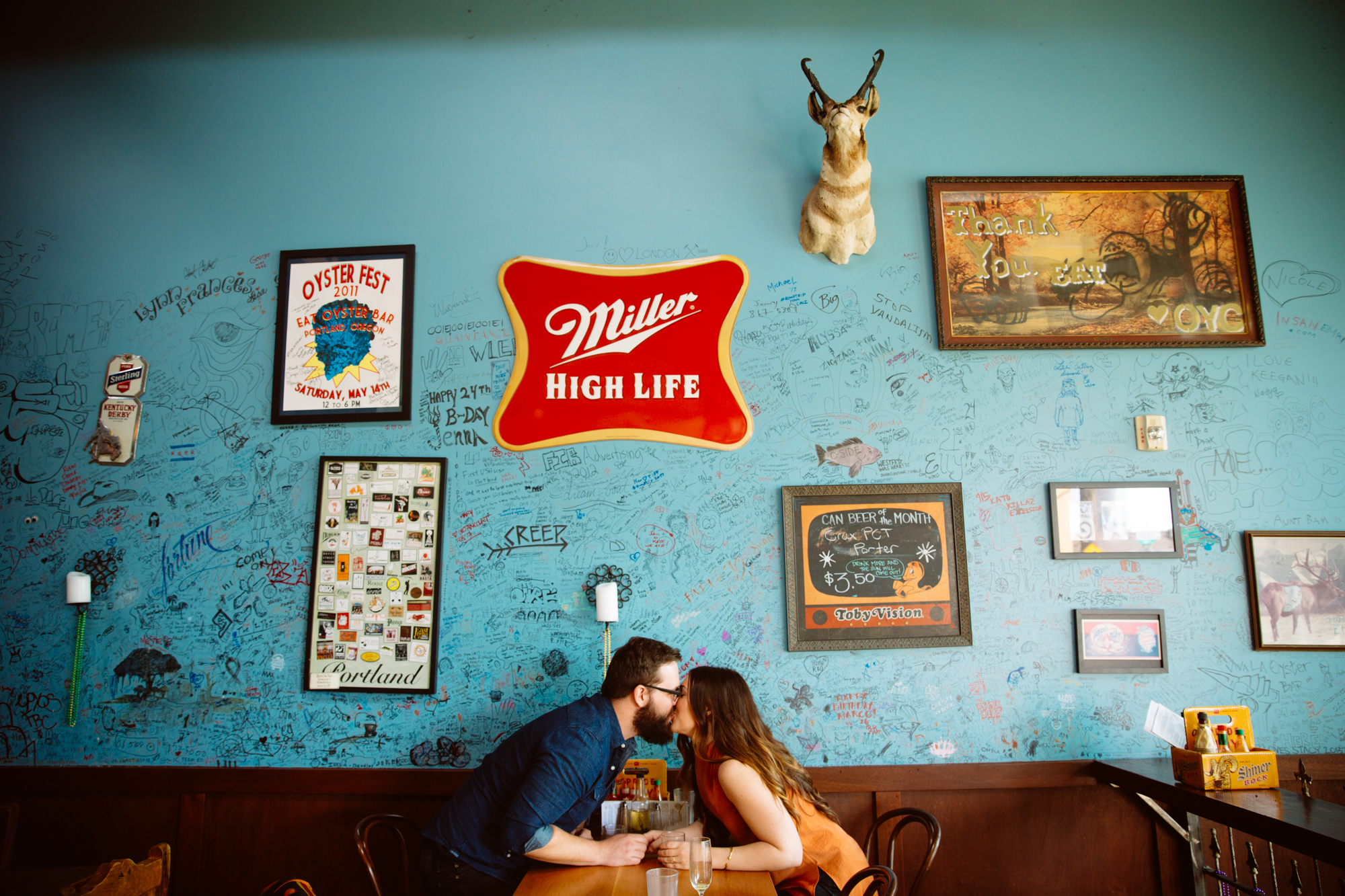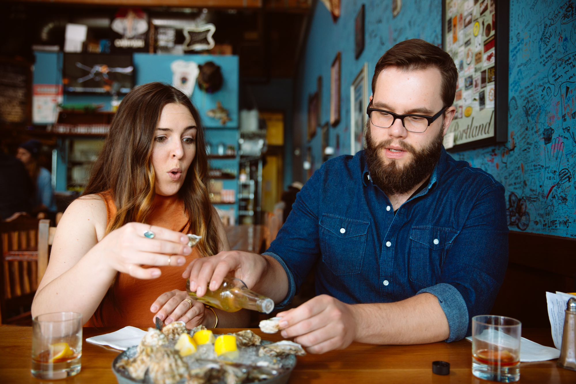 Any afternoon spent eating oysters, exploring the best murals in Portland and jumping in the river is pretty much the best afternoon ever. Not to mention spending it with two astonishingly wonderful people. Mandy and Avery are perfect for each other in every way- they laugh together all the time, bring out the best in each other and have a lot of fun together. They met while Mandy was traveling to Colorado for work and decided to make the long distance thing work. “Jumping in has always been a theme of our relationship from the start” said Avery of their love. Not surprisingly, he proposed while traveling in Ireland right before plunging into the Atlantic ocean in winter. “Will you jump in with me?” He asked- “Yes!” She replied and Splash!!! They are tying the knot this June and it’s going to be insanely magical. Our fun adventure started at Eat : An Oyster Bar, near their home in North Portland where they like to hang. We ate raw oysters and cheered Negronis! We then explored the many incredible murals on Alberta and ended at sunset on the docks in SE Portland. There was another photographer shooting a guy dressed up as a T-rex so we posed with him and he recognized Mandy! They are mutual friends and it was hilarious. Only in Portland in all the best ways. Can’t wait for Mandy and Avery’s wedding for sure.